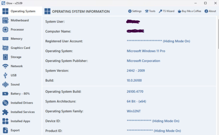 Glow 25.14 — бесплатный инструмент для анализа и диагностики ПК на Windows 10/11 Windows · 24 октября, 2025 · 10 просмотров